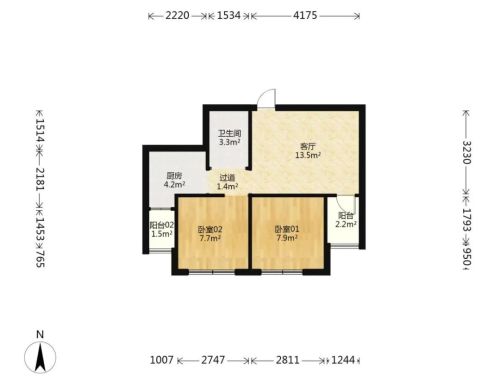 房屋戶型: 2 室1廳 1 廚1衛(wèi)