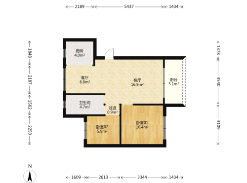 房屋戶型: 2 室2廳 1 廚1衛(wèi)