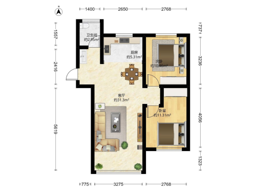 房屋戶型: 2 室2廳 1 廚1衛(wèi)