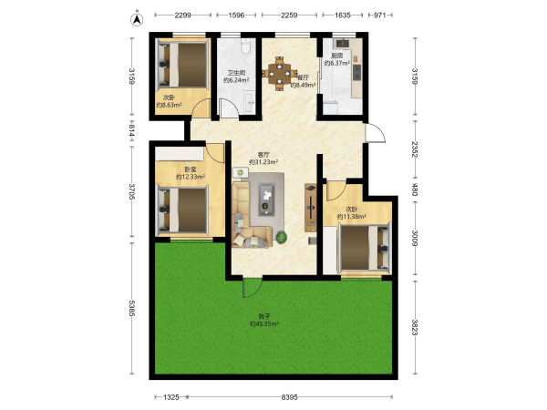 房屋戶型: 3 室2廳 2 廚1衛(wèi)