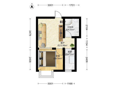 房屋戶型: 1 室1廳 1 廚1衛(wèi)