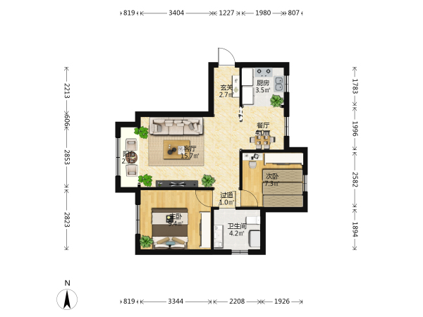 房屋戶型: 2 室2廳 1 廚1衛(wèi)
