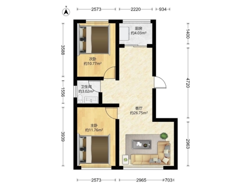 房屋戶型: 2 室1廳 1 廚1衛(wèi)