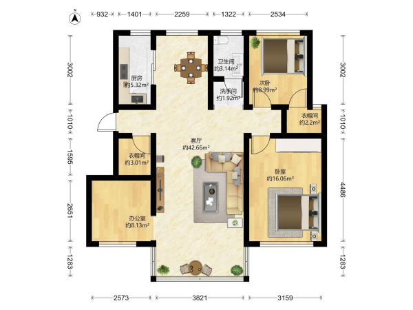 房屋戶型: 3 室2廳 1 廚2衛(wèi)