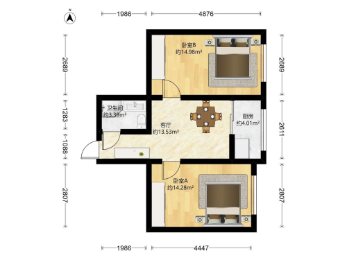房屋戶型: 2 室1廳 1 廚1衛(wèi)