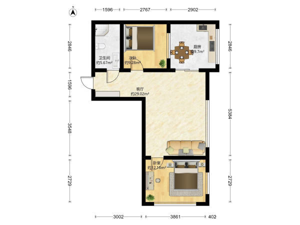房屋戶型: 2 室1廳 1 廚1衛(wèi)