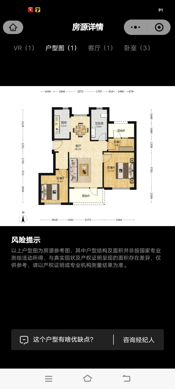 房屋戶型: 3 室2廳 1 廚1衛(wèi)